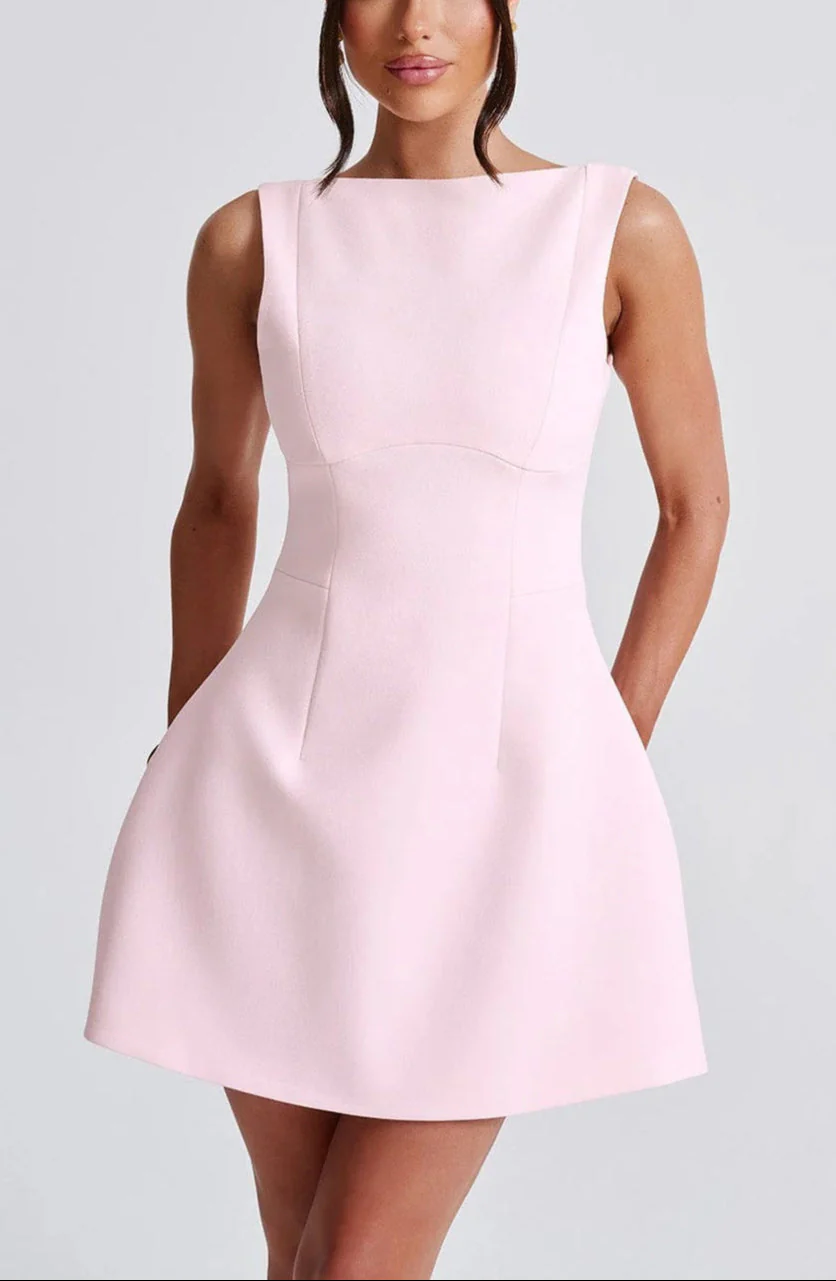 Meet Delphine, the ultimate little white dress designed to make a statement. Crafted from premium non-stretch crepe fabric, this mini dress features a voluminous bubble skirt for a playful yet elegant look. The high boat neckline adds sophistication, while the scoop back creates a striking contrast. Perfect for special occasions.